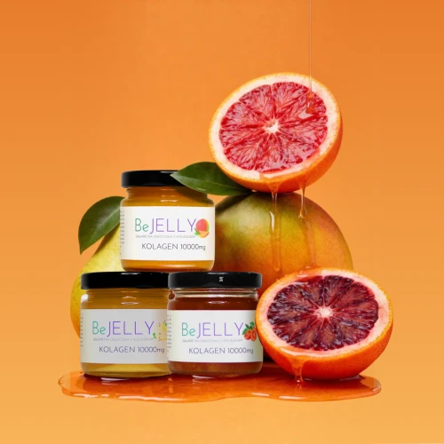 Twoje zdrowie, uroda i chwila przyjemności. - Wierzymy, że wszystko co jemy powinno sprawiać Ci przyjemność. Każdemu należy się taka chwila, a naturalny, zdrowy deser na pewno nią będzie. Świeżo tłoczony sok z najlepszej jakości owoców zamknęliśmy w lekkiej, soczystej galaretce, która kusi smakiem i zadba o Twoje zdrowie. Połączenie źródeł owocowych witamin i kolagenu w formie BeJelly to przygotowany specjalnie dla Was deser – łączy naturalną magie owoców z siłą kolagenu, który wspiera skórę, włosy, paznokcie i stawy. Owoce to prawdziwa skarbnica witamin, minerałów i antyoksydantów. Wzmacniają odporność, wspierają serce i układ trawienny. Dostarczają energii w naturalnej, lekkiej formie i chronią komórki przed stresem oksydacyjnym. Regularne sięganie po owoce to prosty sposób na więcej witalności, lepsze samopoczucie i zdrowy wygląd każdego dnia. Świeżo tłoczony sok to połączenie smaku i troski o zdrowie. Każda porcja to porcja witamin, antyoksydantów i energii w najczystszej postaci. BeJelly nie tylko orzeźwiają, ale też wspierają odporność, dodają witalności i dbają o codzienną równowagę organizmu. Najwyższej jakości kolagen wołowy odbudowuje struktury skóry, poprawia jej jędrność i wspiera regenerację stawów. W połączeniu z naturalnymi właściwościami owoców oddajemy w Twoje ręce więcej niż suplement - oddajemy przyjemność.